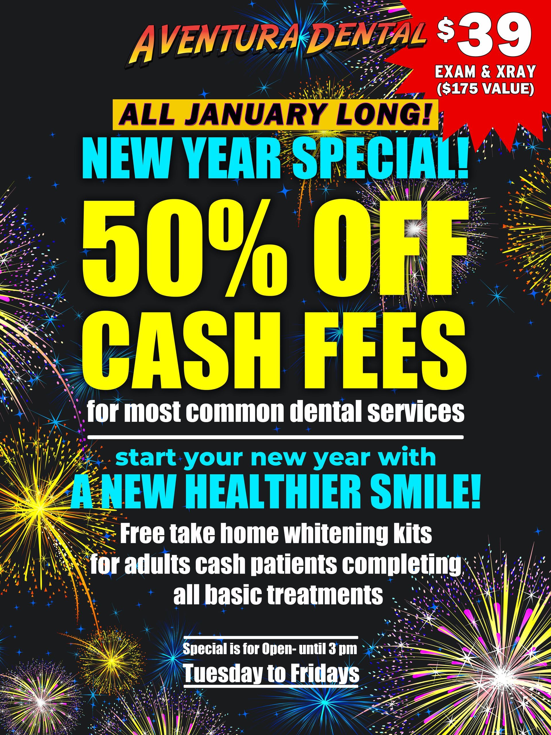 This blog post promotes Aventura Dental's exciting New Year specials aimed at helping individuals start 2026 with a healthier smile. Located in Irving, the dental clinic is offering an exclusive Spring Dental Special, which includes an exam and X-rays for only $39, significantly lower than their regular price of $175. The post also highlights a 50% discount on cash fees for common dental services and the opportunity for adults completing basic treatments to receive a free take-home whitening kit. With flexible hours and a convenient location, Aventura Dental invites readers to take advantage of these exceptional offers and book an appointment to enhance their oral health and confidence.